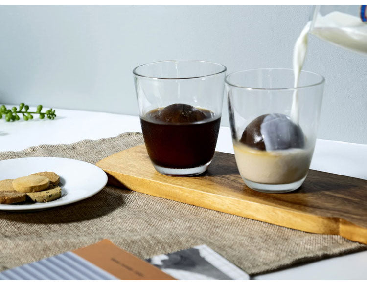 氷の作り方は本体容器に水を入れてフタをし、冷凍庫で7~8時間凍らせるだけ。手間もかからず簡単に丸い氷がつくれます。