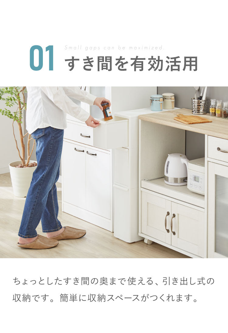 ライクイット ( like-it ) キッチン収納 すき間 引出し スリム 3段 幅17x奥46.5x高82cm オールホワイト 日本製 TS-111L 隠す収納 幅17cm デッドスペース すき間を活用(代引不可)