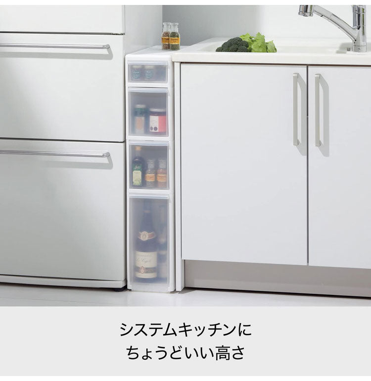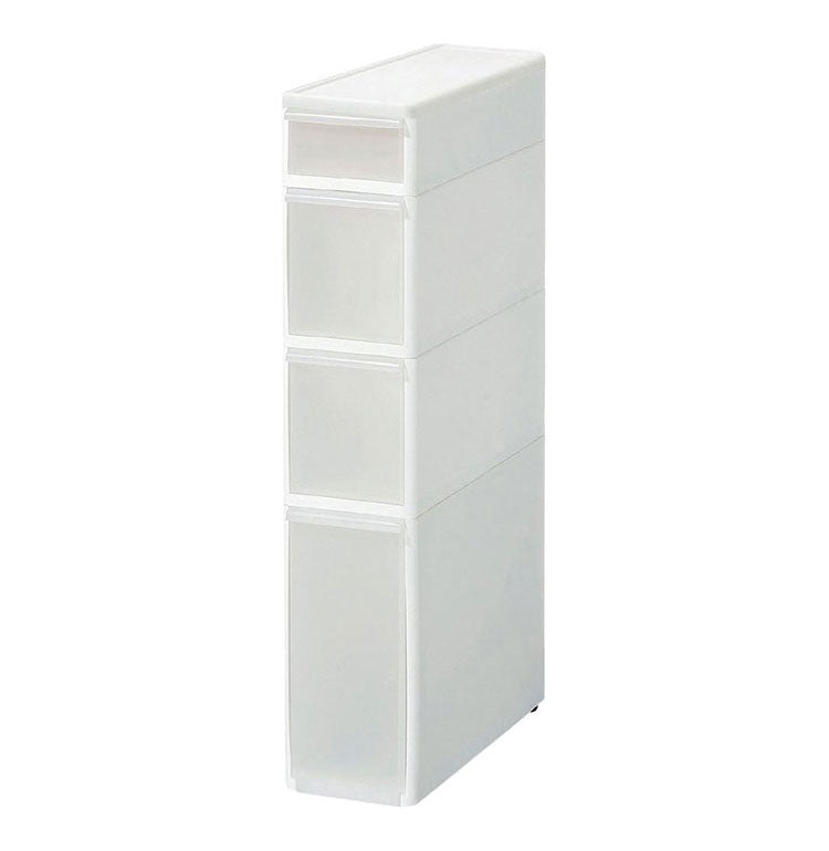 全体がきれいなホワイトの引き出しストッカー。 中身が透けて見えないので見た目すっきり。 キッチンやサニタリーはもちろん、リビングでも使える「隠す収納」アイテム。