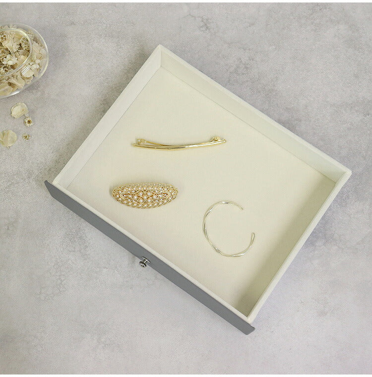 シンプルデザインで、お部屋のインテリアに馴染みやすいジュエリーボックスです。