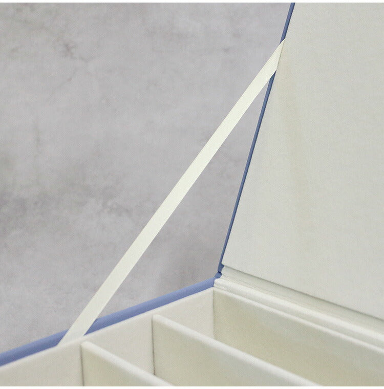 ベルベット素材内装:内部はベルベット素材で仕上げており、収納するアクセサリー類を傷めず、収納いただけます。