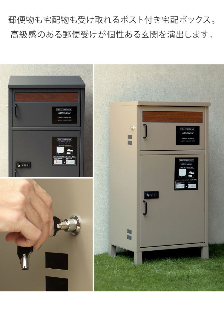 宅配ボックス ダイヤルロック ポスト付き ガルバナイズド処理 ポスト一体型 郵便ポスト 郵便受け 一戸建て用 ダイヤル錠 大容量 スタンドポスト 置き型ポスト ポスト 戸建て メールボックス(代引不可)