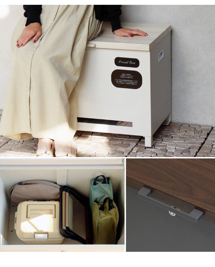 ベンチとしても使用可能な宅配ボックスになります(天面耐荷重:約80Kg)。