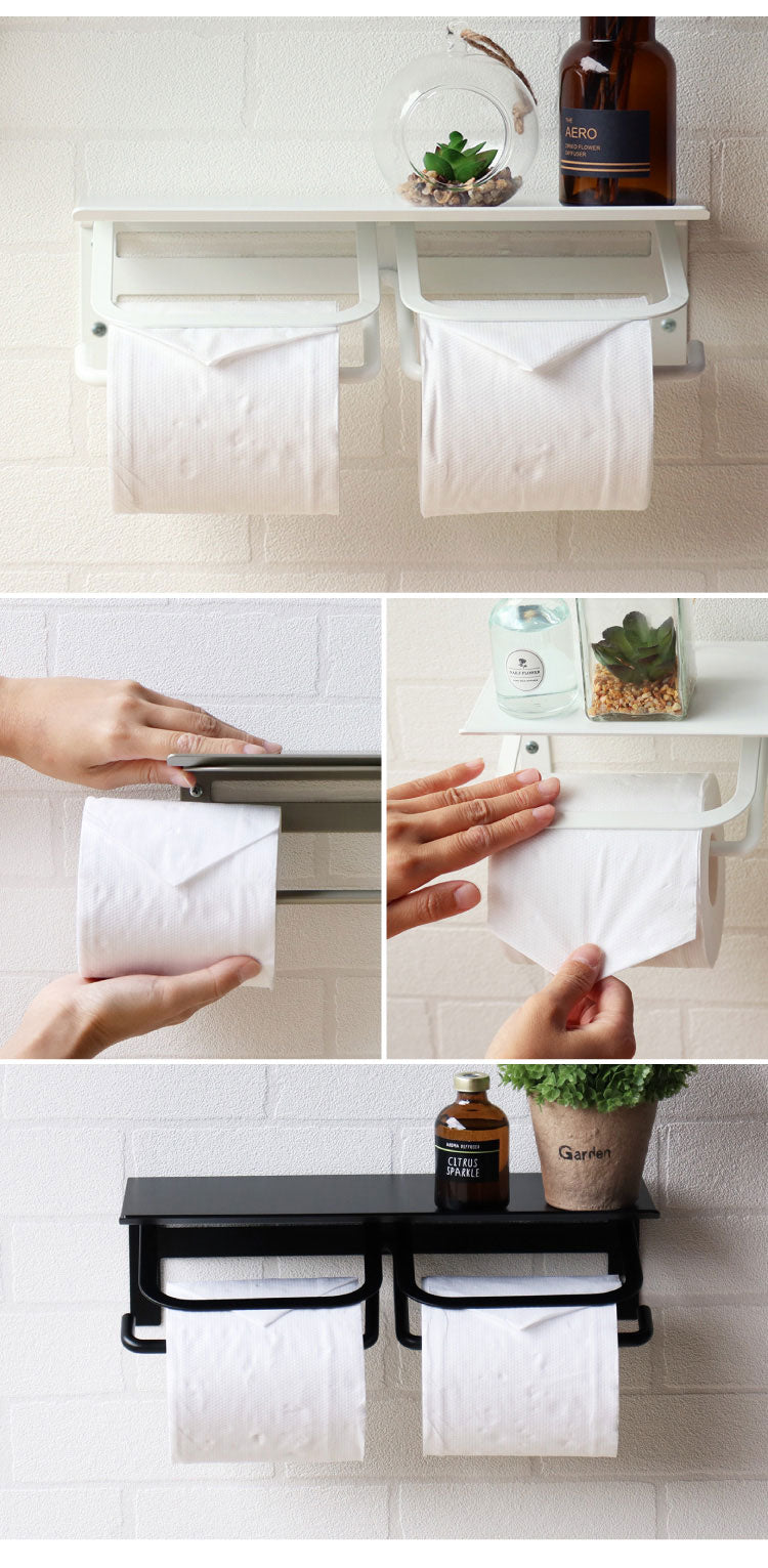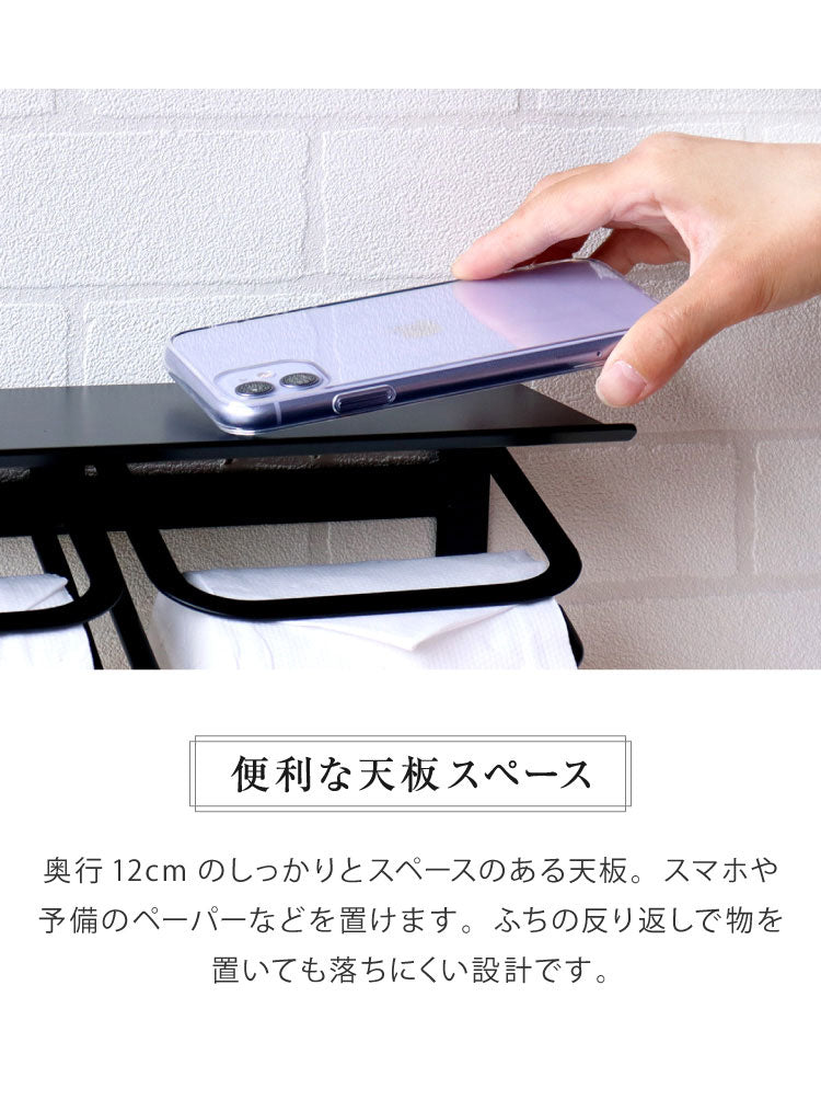 トイレットペーパーホルダー ダブル スチール 二連 アイアン マット シンプル おしゃれ 男前 かっこいい スタイリッシュ シック スマホ置き 収納 棚 ディスプレイ ブラック ホワイト シャンパン(代引不可)
