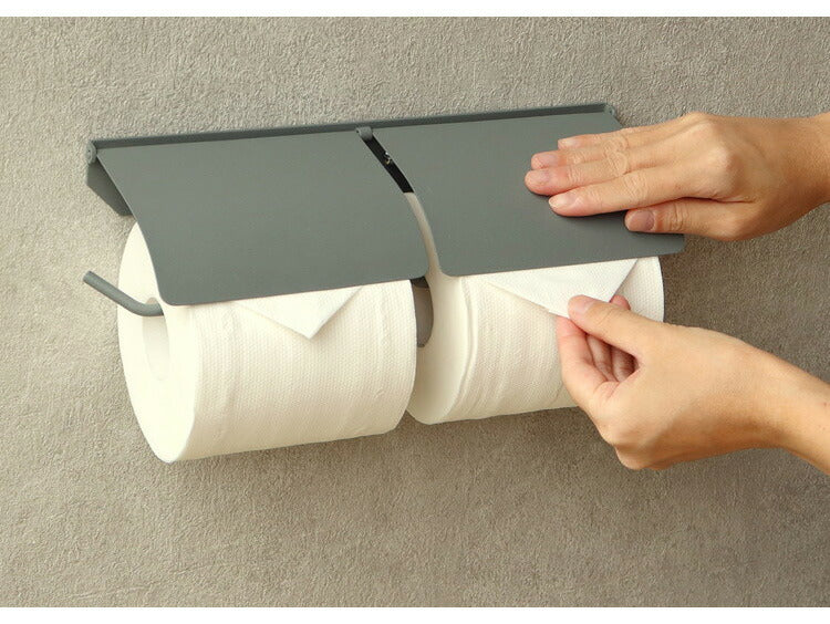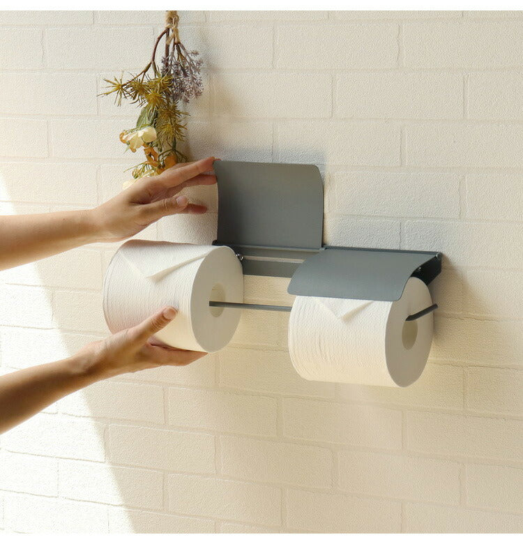 アイアントイレットペーパーホルダー ダブルタイプ マット 二連 スチール 男前 かっこいい レトロ モノトーン カフェ風 アンティーク風 ヴィンテージ 北欧 おしゃれ 簡単設置 ネジ付き 錆びにくい(代引不可)