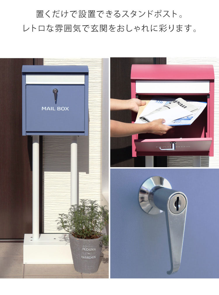 スタンドポスト くすみカラー 大容量 置き型 鍵付き 郵便ポスト 郵便受け 一戸建て用 大きい A4 簡単設置 工事不要 置くだけ シリンダー錠 錆びにくい 新築 シンプル おしゃれ かわいい(代引不可)