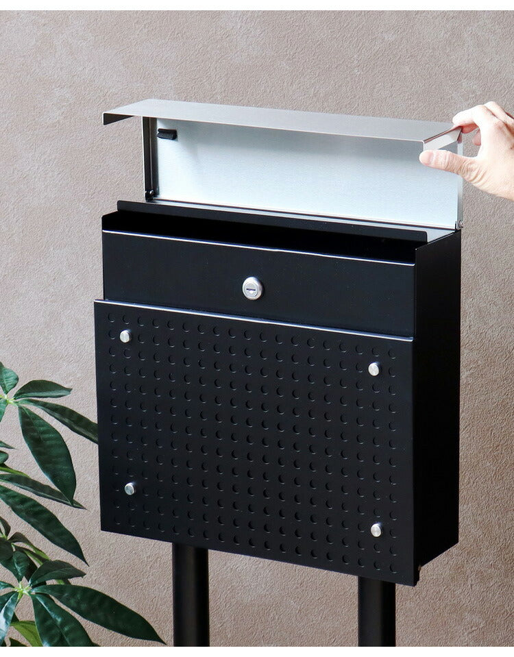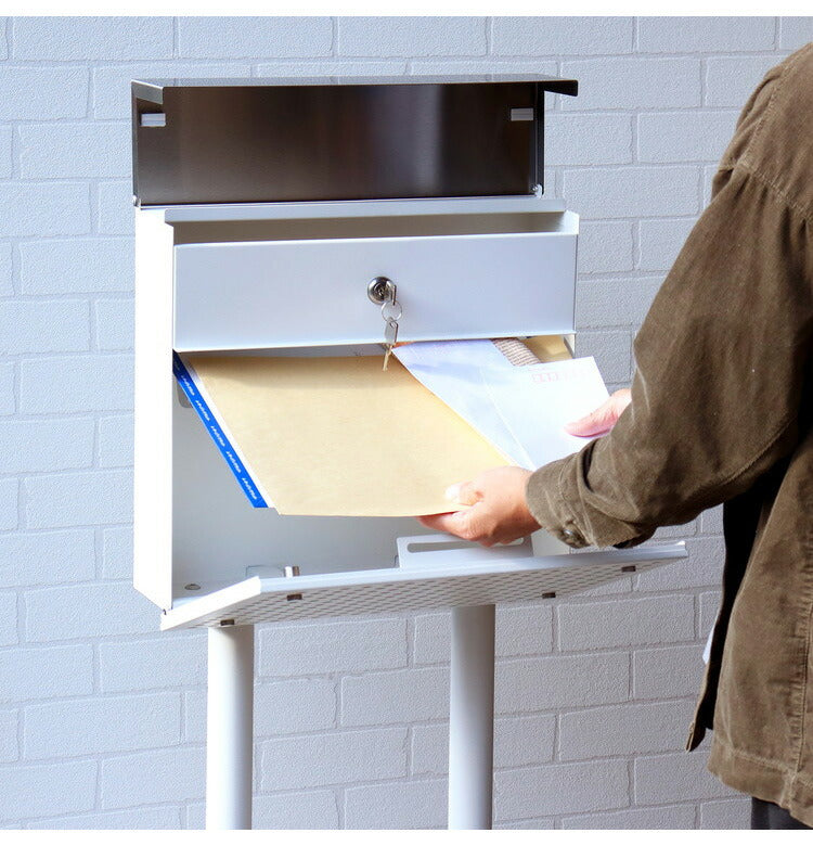 スタンドポスト 工事不要 シリンダー錠 郵便ポスト 郵便受け 新聞受け メールボックス ポスト 玄関 ブラック ホワイト レターパックライト 投函可能 おしゃれ 北欧 新築 一戸建て用 一軒家(代引不可)