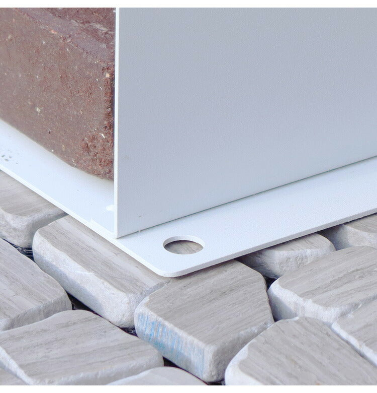地面固定用のアンカーボルトが付属します。土台部にアンカーボルトを打ち込む穴があり、地面とポストを固定することも可能です。