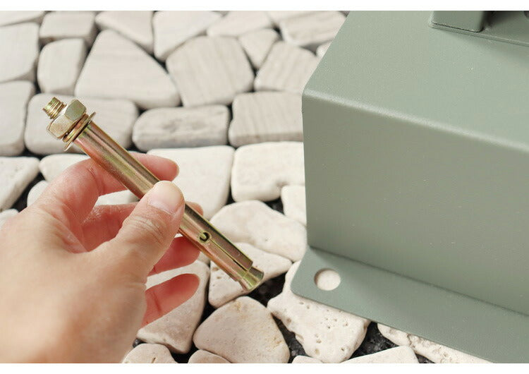 地面固定用のアンカーボルトが付属します。土台部にアンカーボルトを打ち込む穴があり、地面とポストを固定することも可能です。