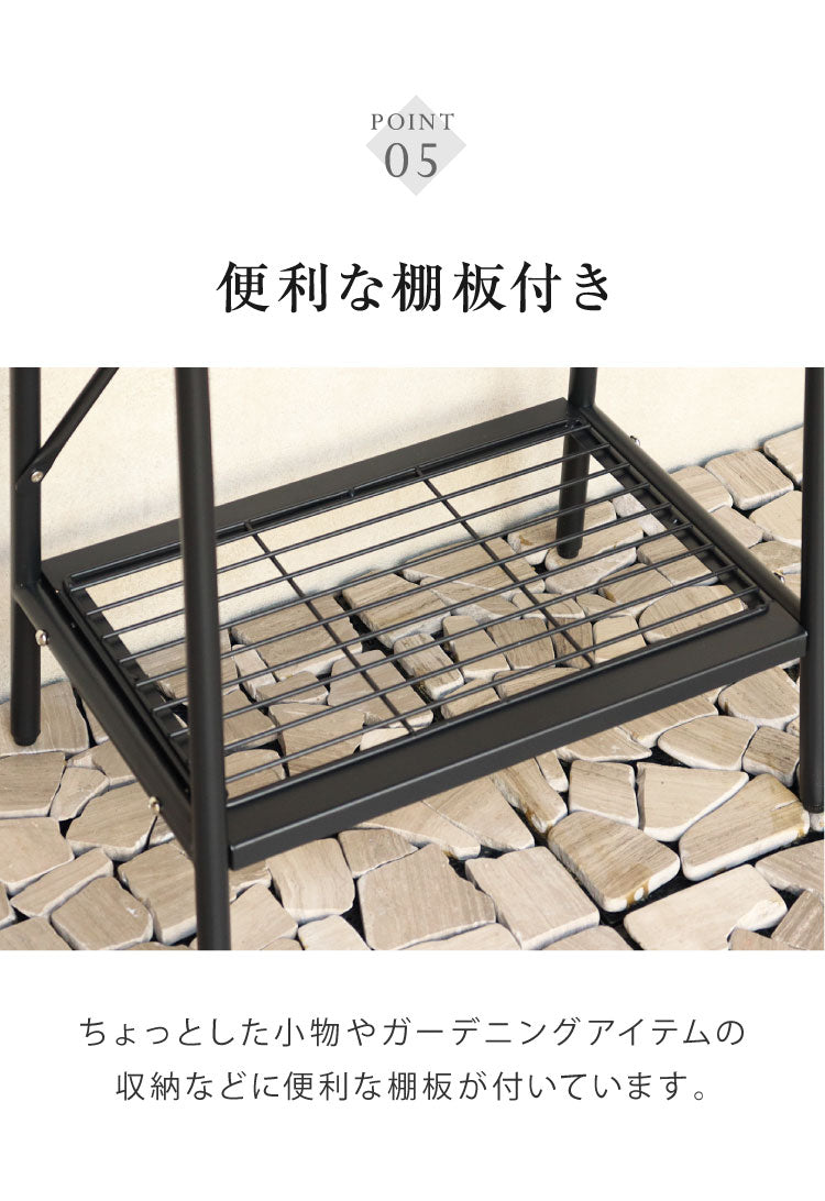 棚板付きで、小物の装飾やガーデニングアイテムの収納として便利にご使用いただけます。