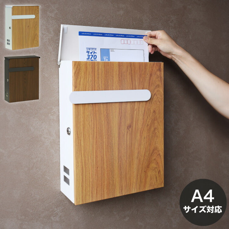 壁掛けポスト メールボックス 郵便ポスト 郵便受け ポスト 玄関 木目 ブラウン ホワイト スリット窓 シリンダー錠 木目調 デザインポスト レトロ コンパクト スタイリッシュ(代引不可)
