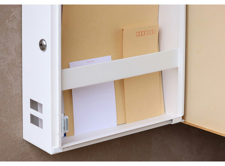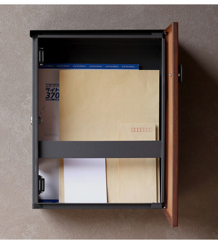 取り出し口内部にストッパーがついているため、郵便物が前に落ちにくい設計になっております。