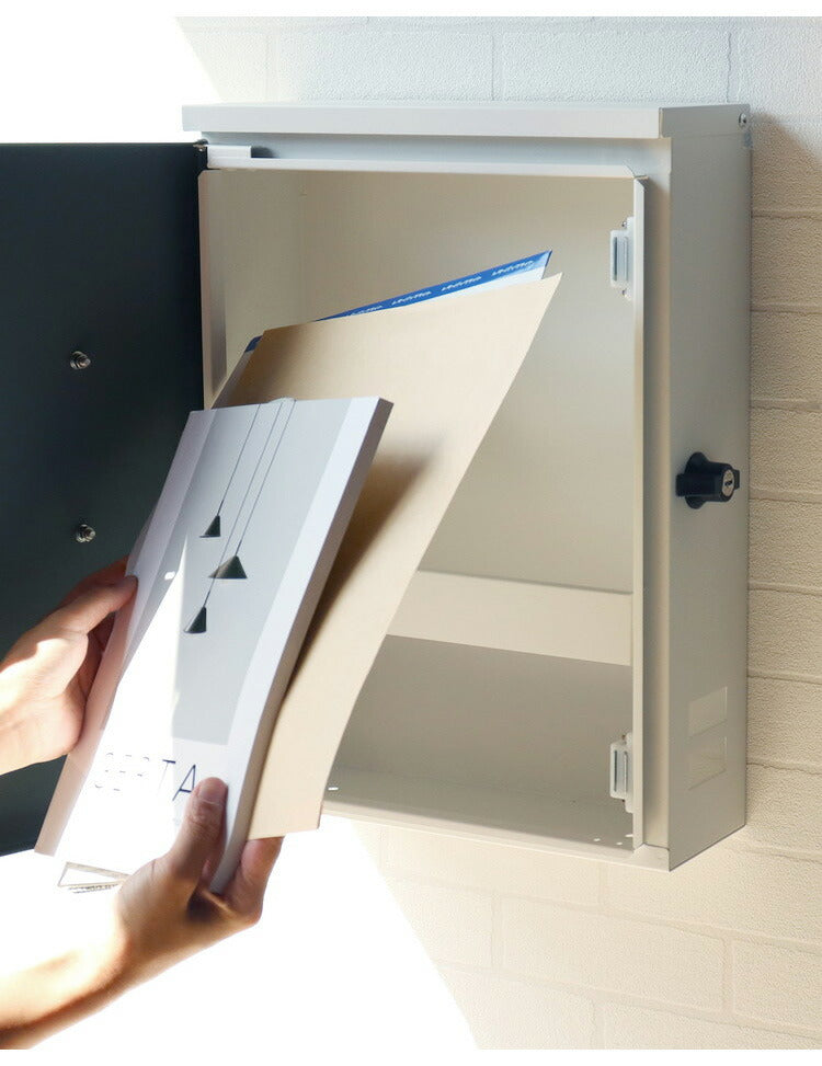 取り出し口内部にストッパーがついているため、郵便物が前に落ちにくい設計になっております。