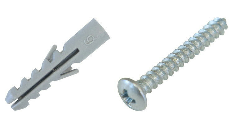 壁面に取付用のアンカー(コンクリート、モルタル用)、取付ネジが付属しております。