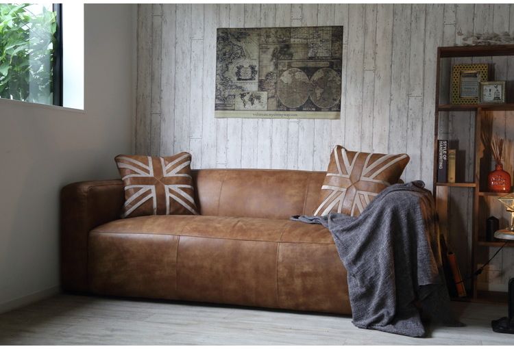 同革質のユニオンジャック柄クッションも2個付属しますので、