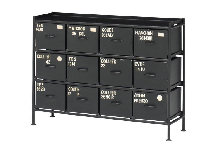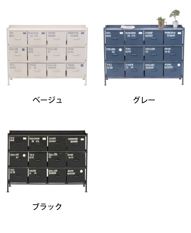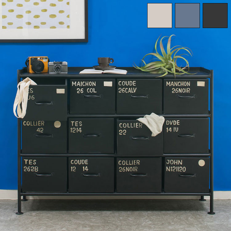 横型チェスト 幅111cm スチールチェスト 12杯引き出し付き 収納棚 箪笥 タンス アイアンチェスト ペイント ハンドメイド レトロ おしゃれ 北欧 ienowa イエノア(代引不可)