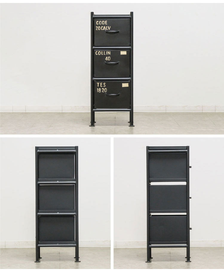 縦型チェスト 幅30cm 3杯引き出し付き スチールチェスト 収納棚 箪笥 タンス アイアンチェスト ペイント ハンドメイド レトロ おしゃれ 北欧 ienowa イエノア(代引不可)