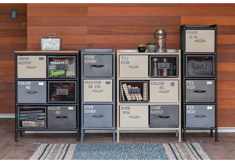 引き出し収納はオープンラックと並べてもおしゃれで便利に使えます。