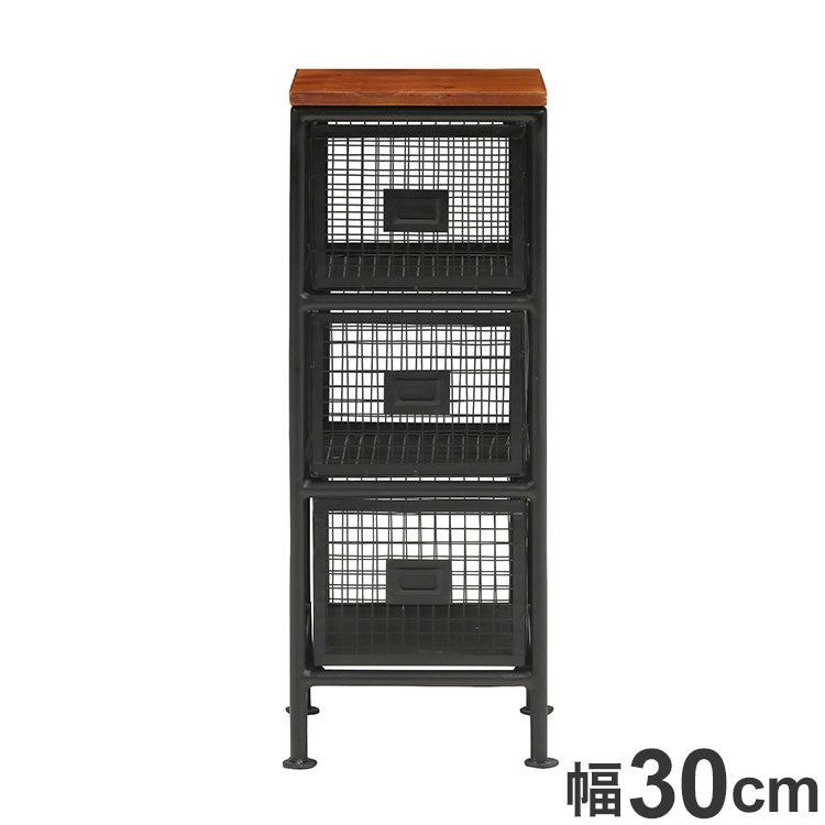スチール メッシュチェスト 縦型3杯タイプ 幅30cm 棚 ヴィンテージ モダン おしゃれ 北欧 天然木 木製 アイアン シンプル 収納 リビング 子ども部屋 新生活 一人暮らし(代引不可)