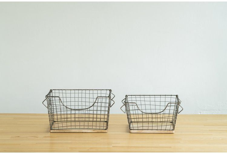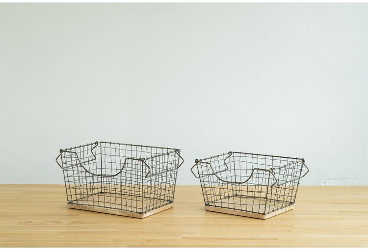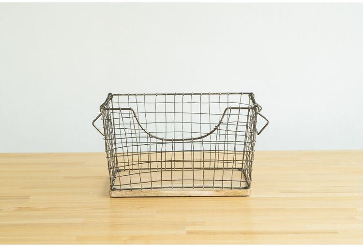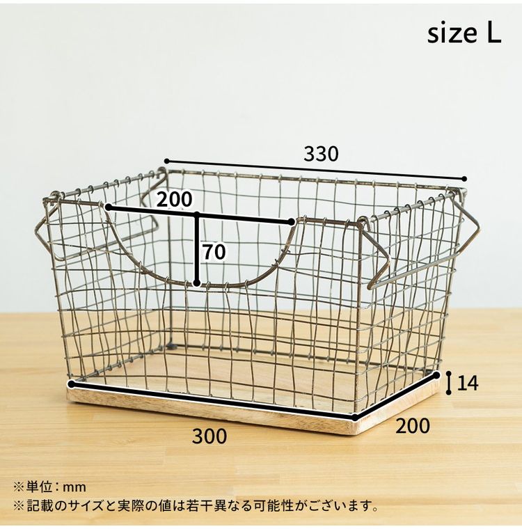 アンティーク調 ワイヤーバスケット Lサイズ シンプル スチール おしゃれ 北欧 かわいい 底板 天然木使用 一人暮らし 雑貨 雑貨入れ 収納(代引不可)