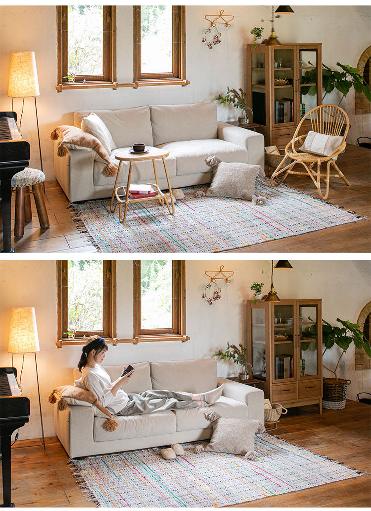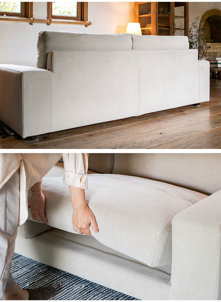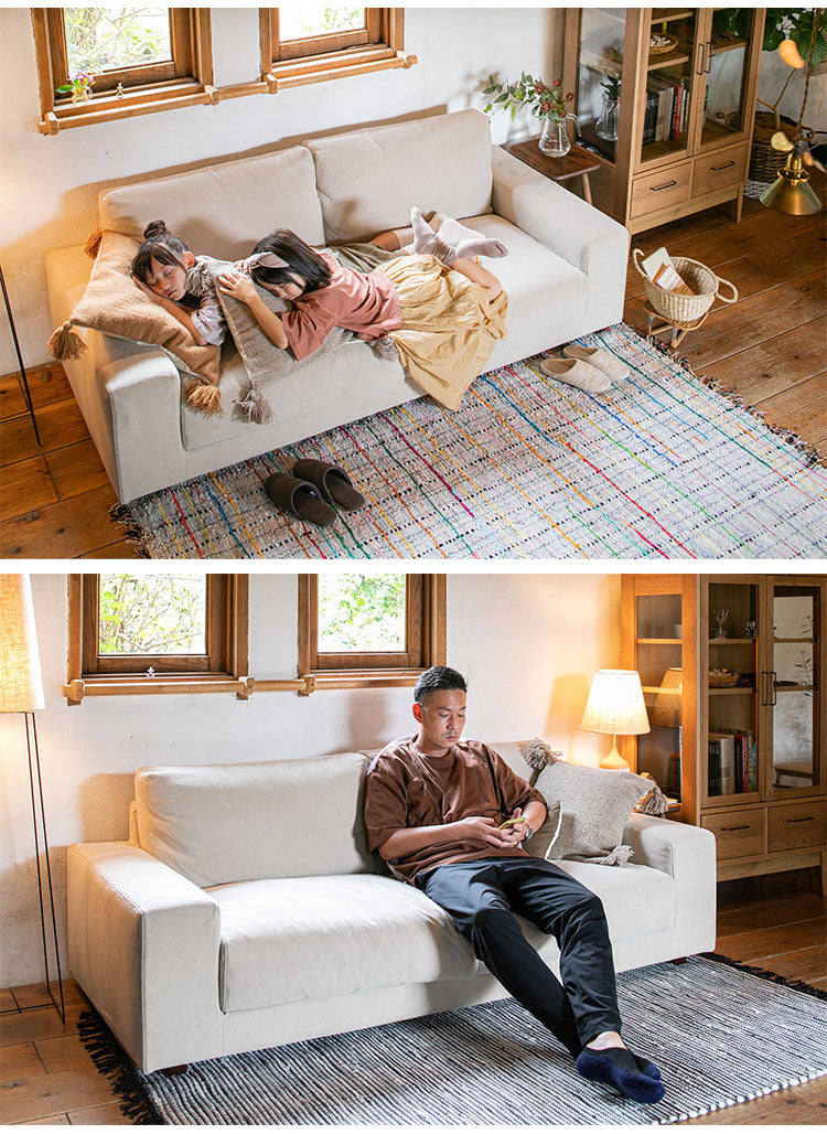 3人掛け ローソファ 幅195cm コットン100%帆布生地 羽毛 木脚 完成品 おしゃれ 北欧 シンプル 3人用 2人用 2人掛け 新生活 一人暮らし(代引不可)