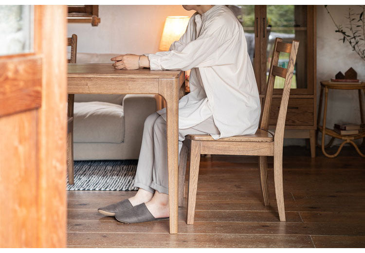座面のふちや背もたれの頂点に面取り加工を施した、やわらかい印象のチェアです。