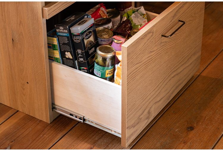 ※ペットボトルなど重いものを収納する時は強度の関係上真ん中に配置ください。表面からは見えないですが、引出しの真ん中に補強桟を付けているためです。