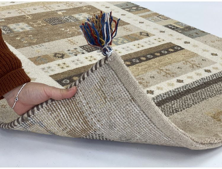 イランの遊牧民の手で織られるラグで、色づかいやユニークな文様が特徴です。