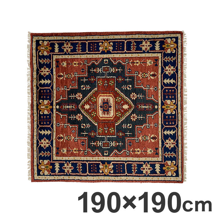 ラグ 190×190cm 柄 トライバル 部族絨毯風 ウール コットン 天然素材 オールシーズン シンプル おしゃれ 北欧 絨毯 カーペット マット リビングマット 新生活 一人暮らし(代引不可)