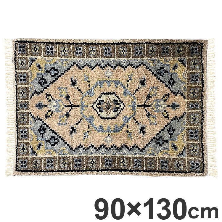 ラグ 90×130cm 花柄 トライバル 部族絨毯風 ウール コットン 天然素材 オールシーズン シンプル おしゃれ 北欧 絨毯 カーペット マット リビングマット 新生活 一人暮らし(代引不可)