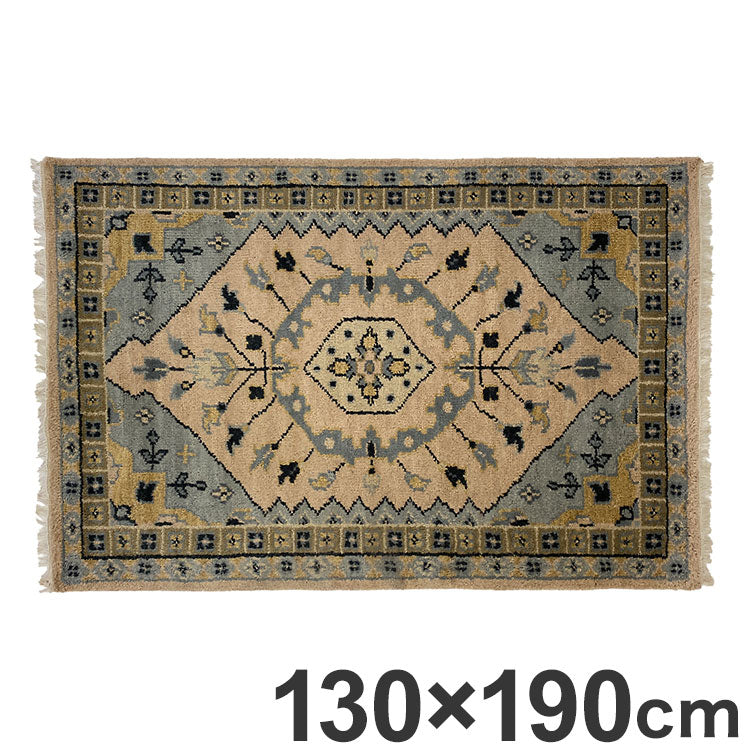 ラグ 130×190cm 花柄 トライバル 部族絨毯風 ウール コットン 天然素材 オールシーズン シンプル おしゃれ 北欧 絨毯 カーペット マット リビングマット 新生活 一人暮らし(代引不可)