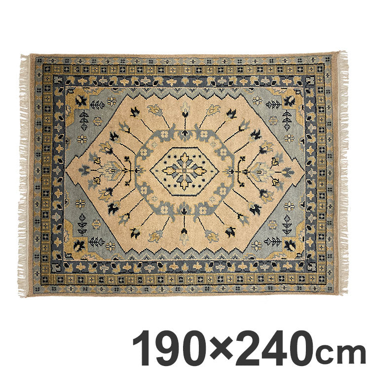 ラグ 190×240cm 花柄 トライバル 部族絨毯風 ウール コットン 天然素材 オールシーズン シンプル おしゃれ 北欧 絨毯 カーペット マット リビングマット 新生活 一人暮らし(代引不可)