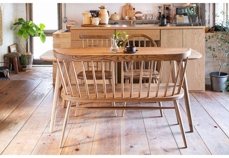 アッシュ無垢材の素材感を楽しめる2人掛けベンチです。