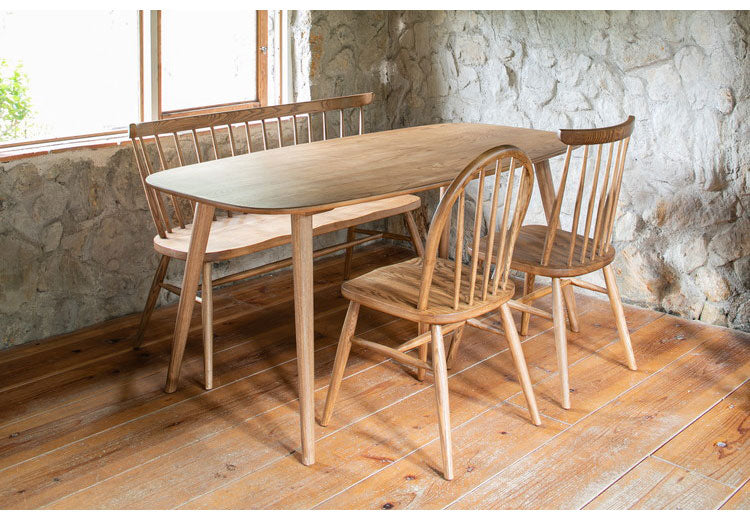 スポークデザインが印象的な背もたれ付きタイプと、テーブルの下に収納できる背無しタイプからお選びいただけます。