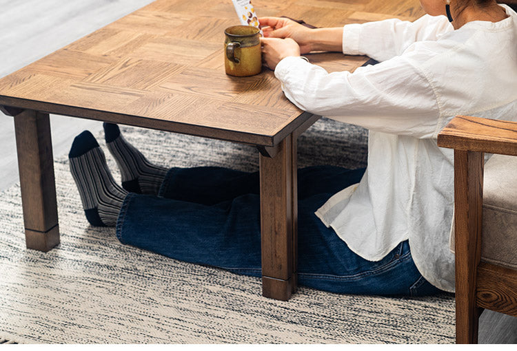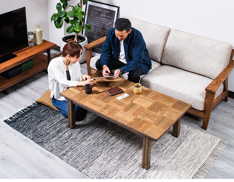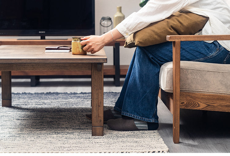 脚を内に入れたデザインでコタツにはないデザインを実現しました。