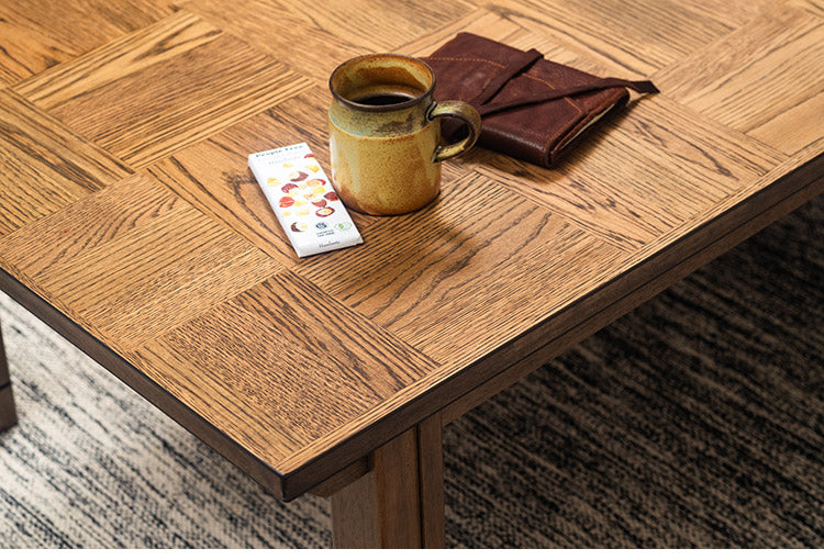 天板はブロック張のデザイン、脚には溝を入れデザイン性アップ。