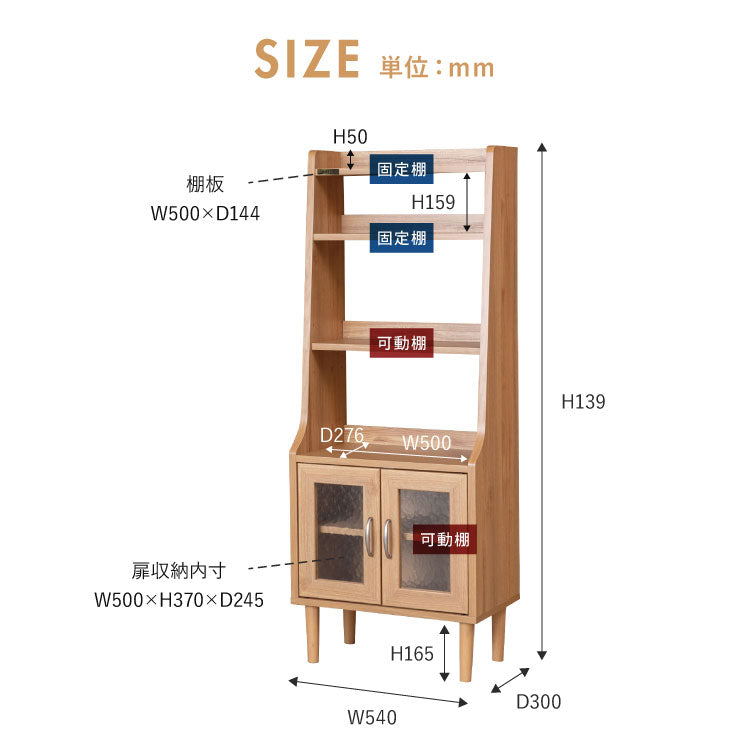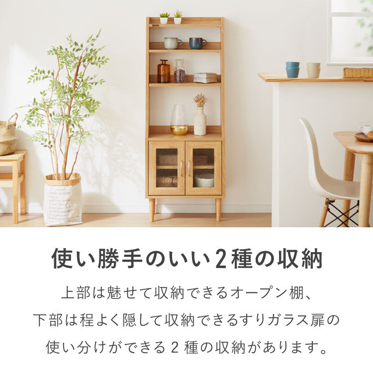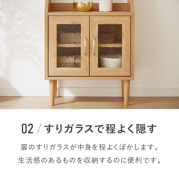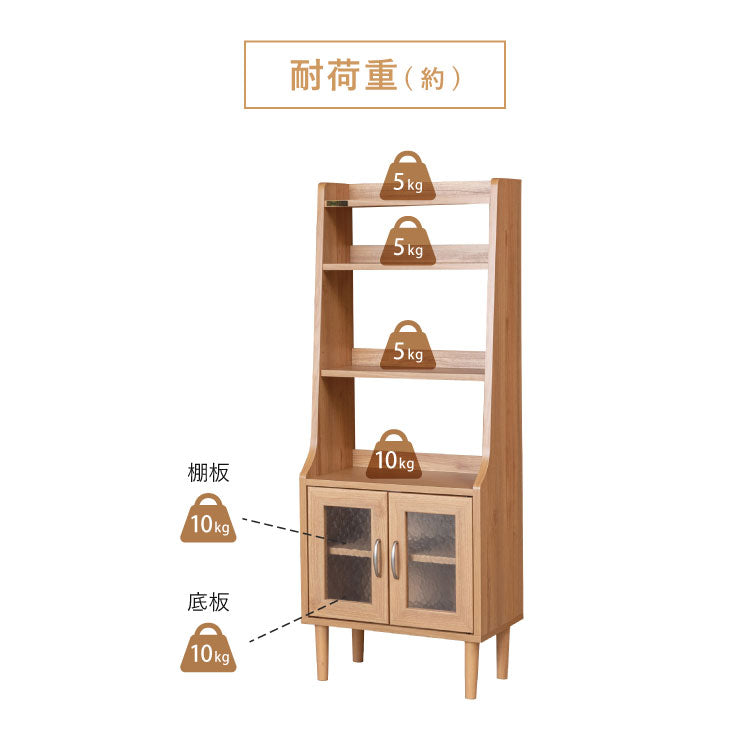 シェルフ オープン収納 幅54cm 木目調 擦りガラス扉 ヴィンテージ レトロ おしゃれ 北欧 棚 ラック スリム 収納棚 食器棚 シンプル オープンラック ディスプレイラック(代引不可)