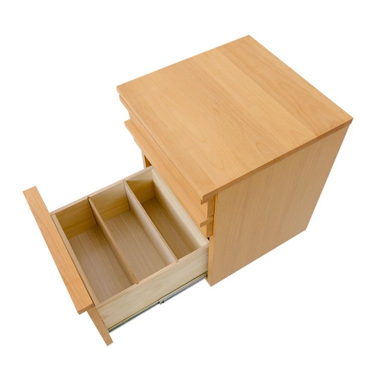 引き出し最下段に仕切り板2枚入り/引き出し全段フルオープンレール/手前のキャスターにストッパー付き