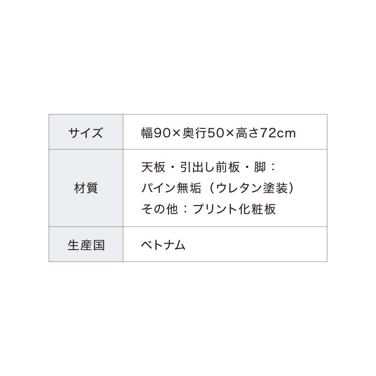 天板・引出し前板・脚:パイン無垢 ウレタン塗装