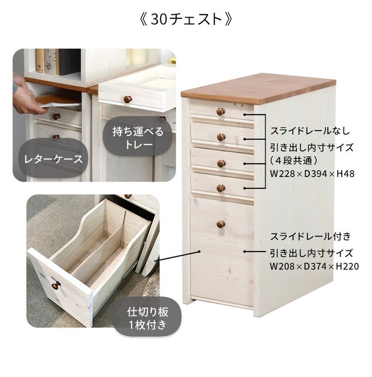 天板・前板:パイン材 ウレタン塗装/本体側面・背面:プリント