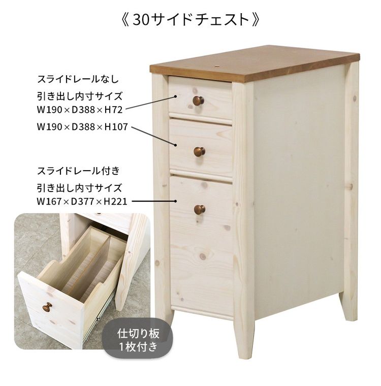 天板・前板:パイン材 ウレタン塗装/本体側面・背面:プリント
