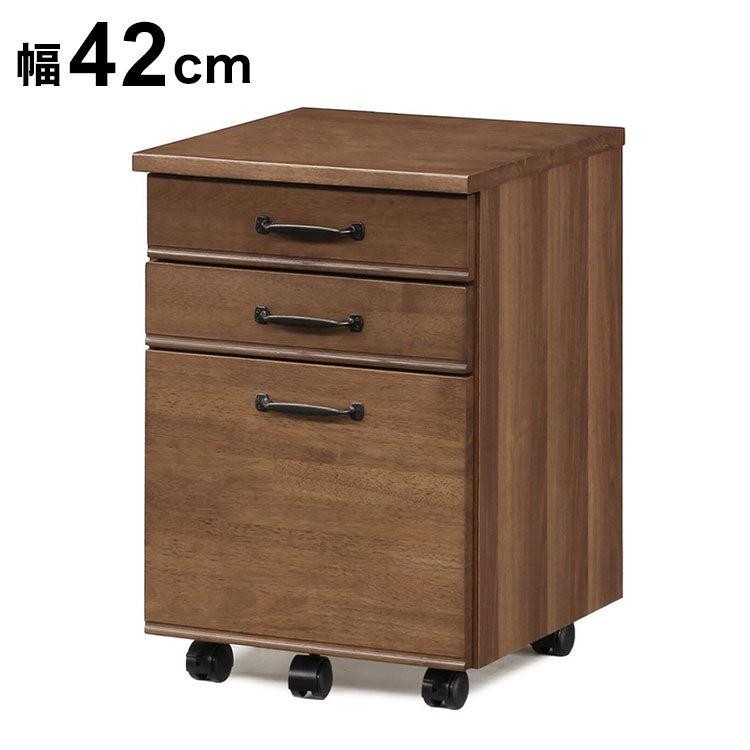 引き出し最下段に仕切り板2枚入り/引き出し全段フルオープンレール/手前のキャスターにストッパー付き