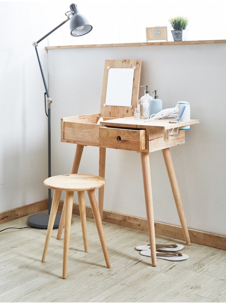 ドレッサーセット 天然木 木製 コンパクト ミラー付き スツール付き 化粧台 鏡 収納 デスク 机 NATURAL SIGNATURE おしゃれ 北欧 シンプル 新生活 一人暮らし(代引不可)