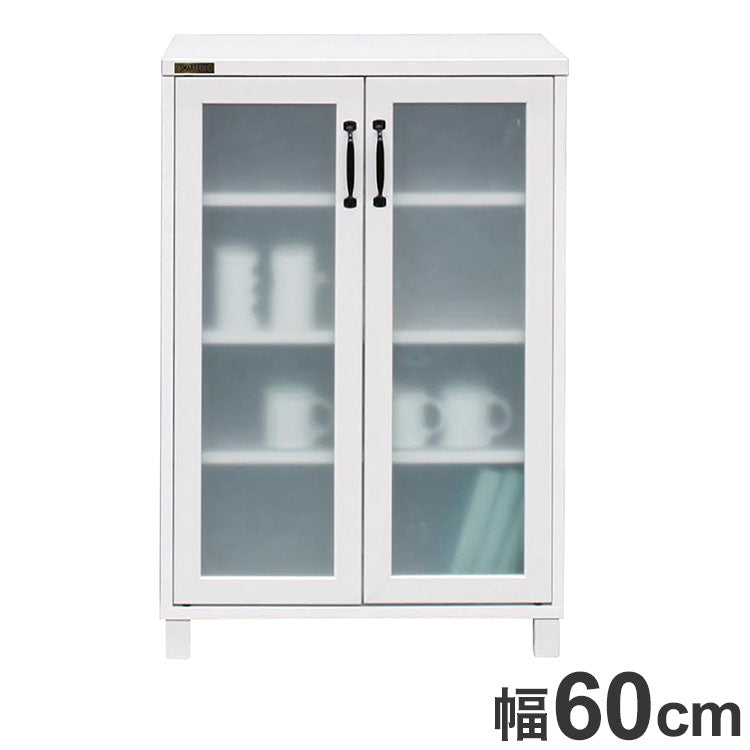キャビネット 幅60cm コンパクト かわいい ホワイト シンプル ガラス調 扉 おしゃれ 北欧 飛散防止 棚 収納棚 新生活 一人暮らし(代引不可)
