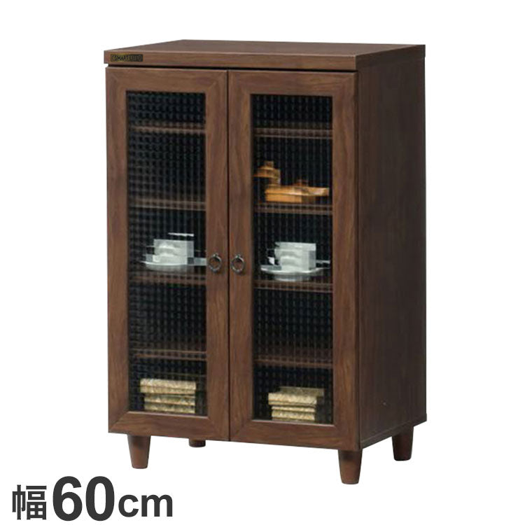 キャビネット 幅60cm ガラス調 扉 木目調 シンプル 食器棚 おしゃれ 北欧 収納棚 コンパクト 新生活 一人暮らし(代引不可)