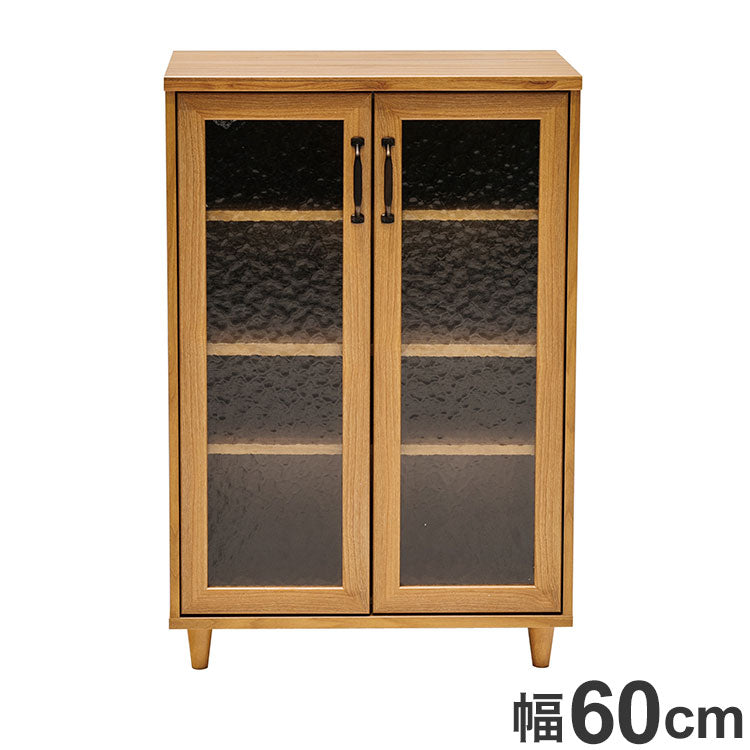 キャビネット 幅60cm カントリー調 ガラス調 扉 木目調 シンプル 食器棚 おしゃれ 北欧 収納棚 コンパクト 新生活 一人暮らし(代引不可)