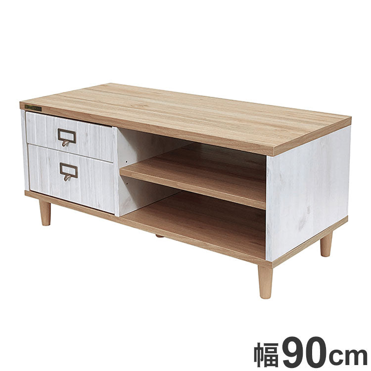 テレビ台 ツートン 幅90cm コンパクト 木目調 引き出し オープン収納 シンプル かわいい おしゃれ 北欧 テレビボード TV台 ローボード 新生活 一人暮らし(代引不可)