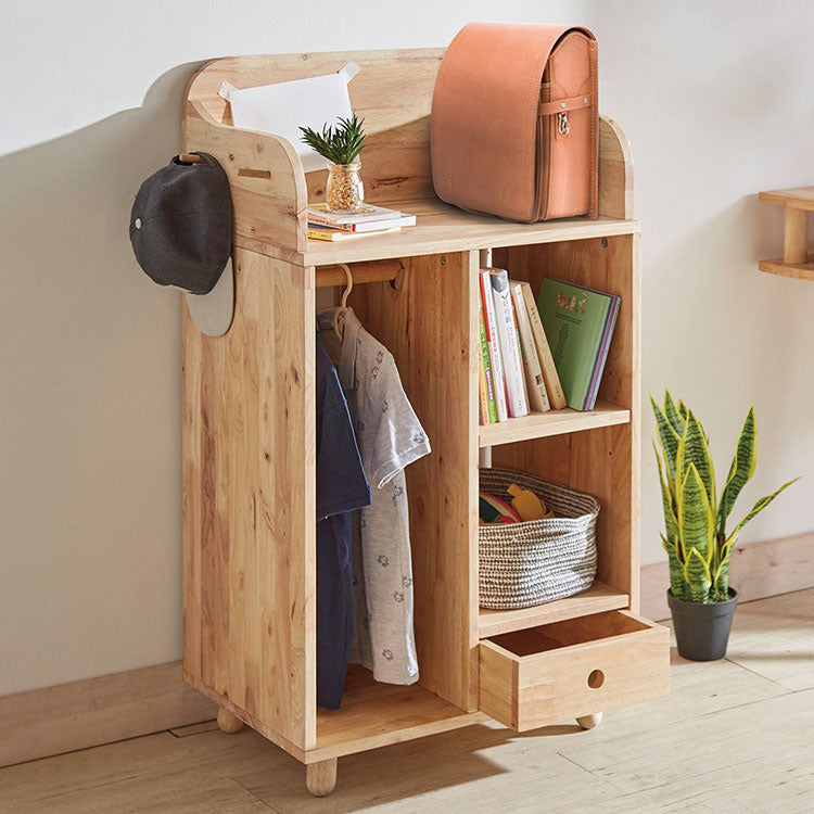 ランドセルラック 天然木 幅60cm ハンガーラック付き オープンロッカー 木目 木製 収納 子ども部屋 子供 おしゃれ 北欧 ナチュラル オープンシェルフ オープン収納 進学祝い NATURAL SIGNATURE(代引不可)