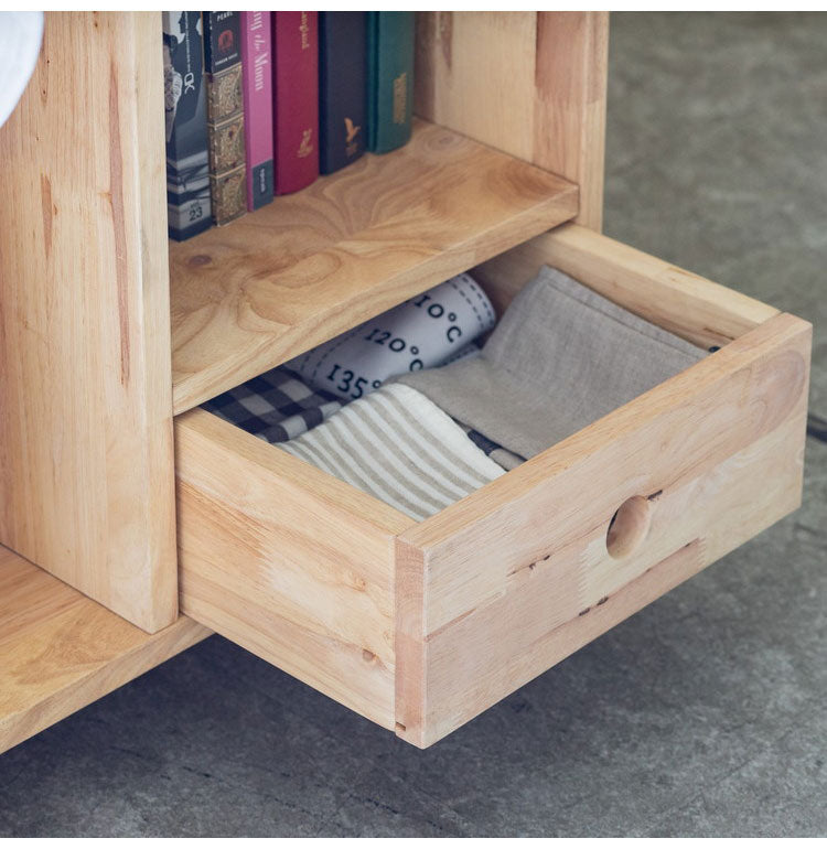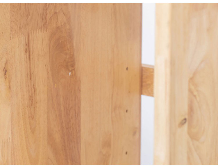 素材にはラバーウッド無垢材をふんだんに使用しており、木目や節といった個性をそのまま活かして仕上げました。