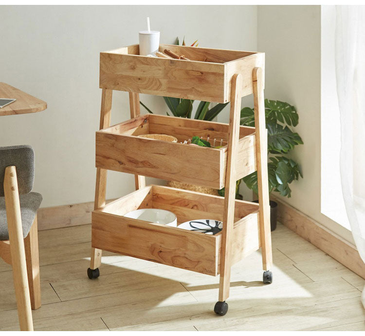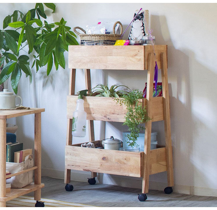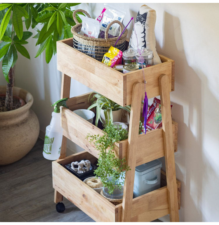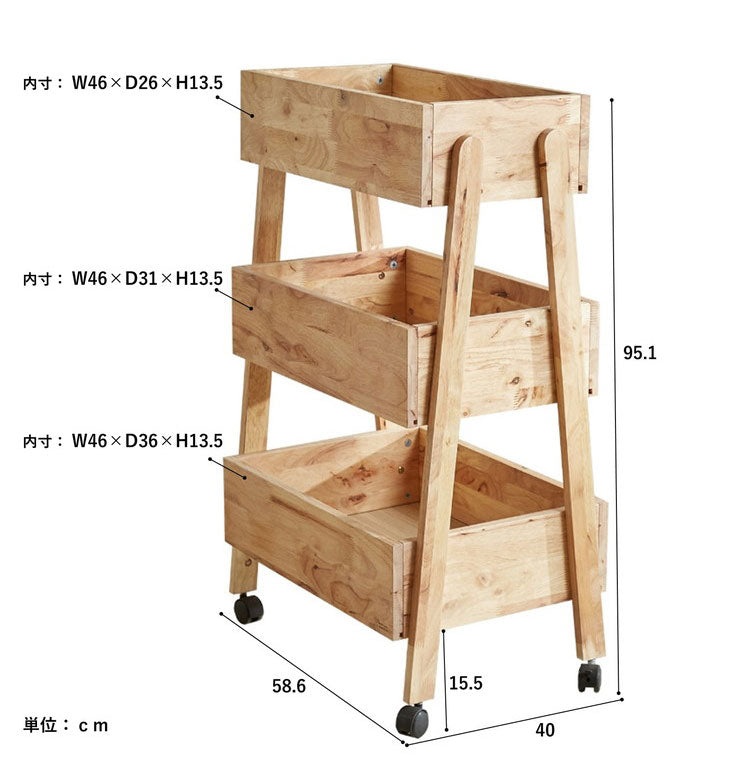 ハの字形の脚がカジュアルで可愛い、木製三段収納BOXです。